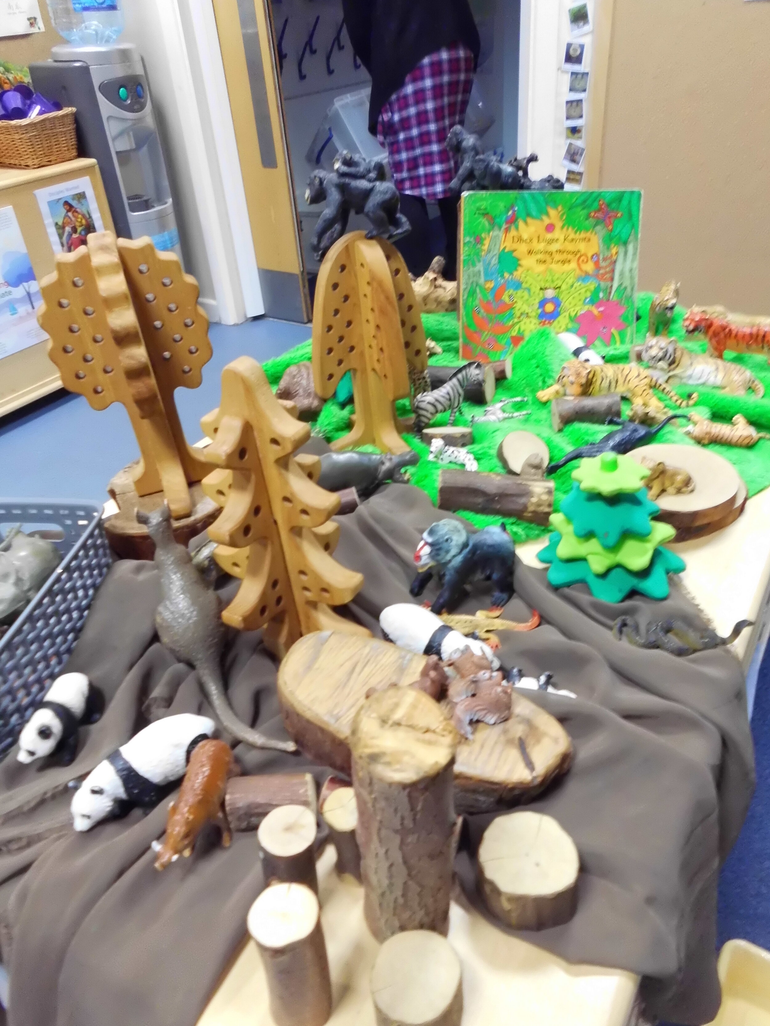 We then all chose our favourite animal for us to discuss. We found out if they were herbivores, carnivores or omnivores; we loved those words. We even remembered that dinosaurs could also be herbivores, carnivores or omnivores. That meant we had to make a dinosaur world as well as a safari/rainforest for the wild animals. We had lots to do!