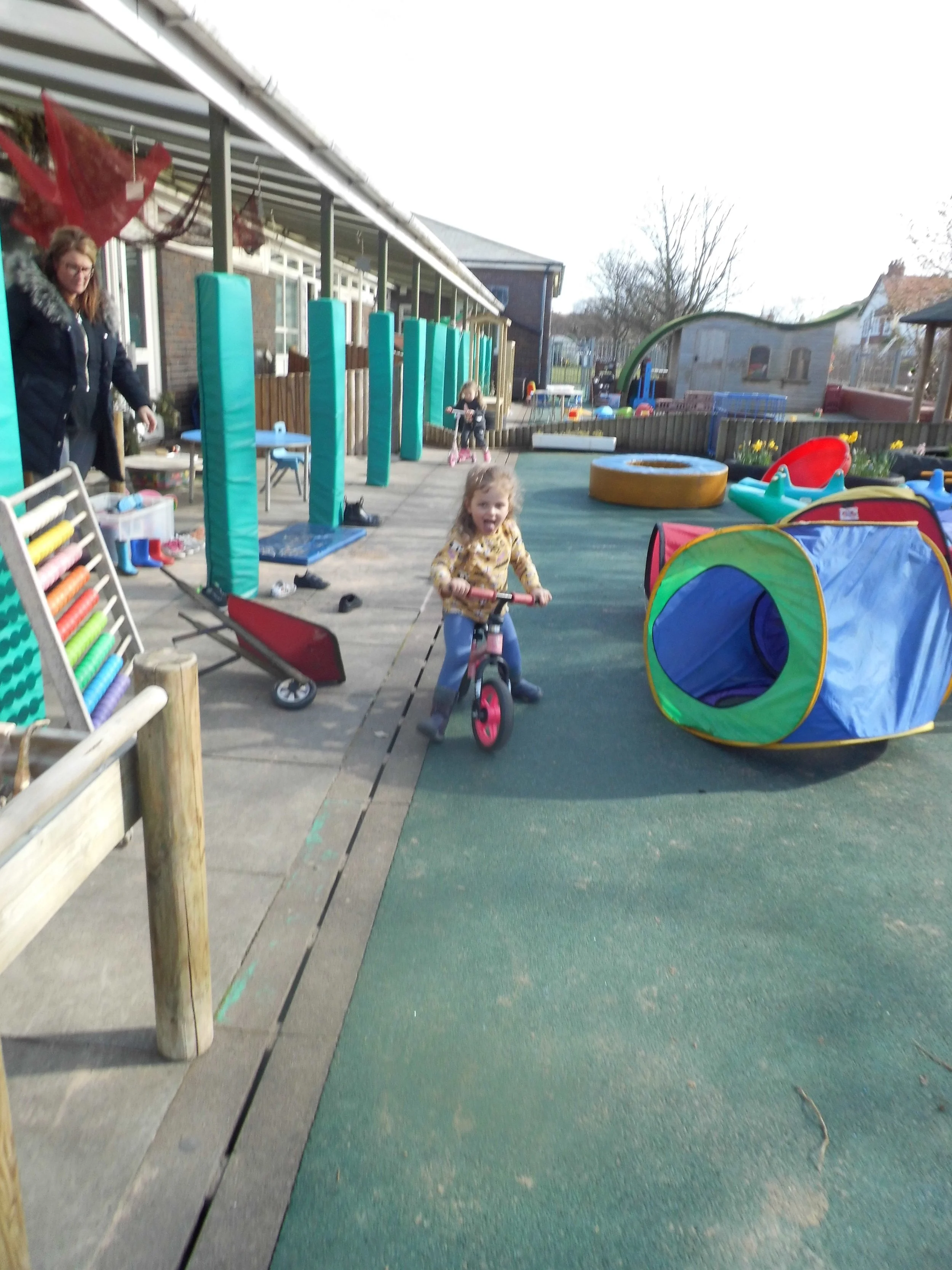 Using our open ended resources there has been some wonderful creative play in the garden. Building towers from the coloured bricks and plastic reels and also making cubes from the large waffles. We have also enjoyed singing and dancing in the garden, enjoying the sunnier days.