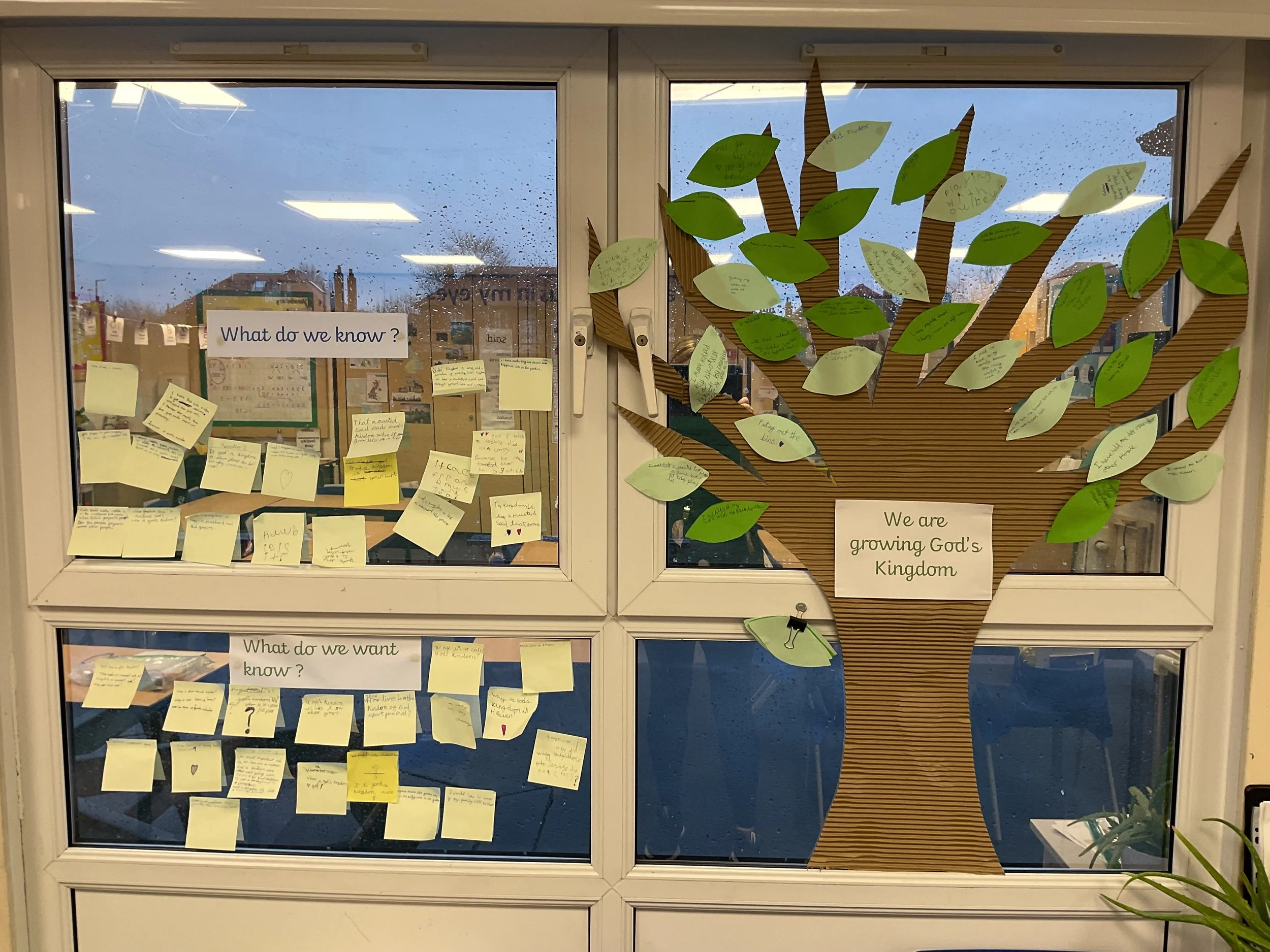 To help us remember this learning, we have created a special tree display in our classroom. Each time we do an action that helps grow God’s Kingdom, such as being kind, helping someone, sharing, or forgiving, we add a leaf to the tree. It has been lovely to see the tree filling up as we make positive choices together.