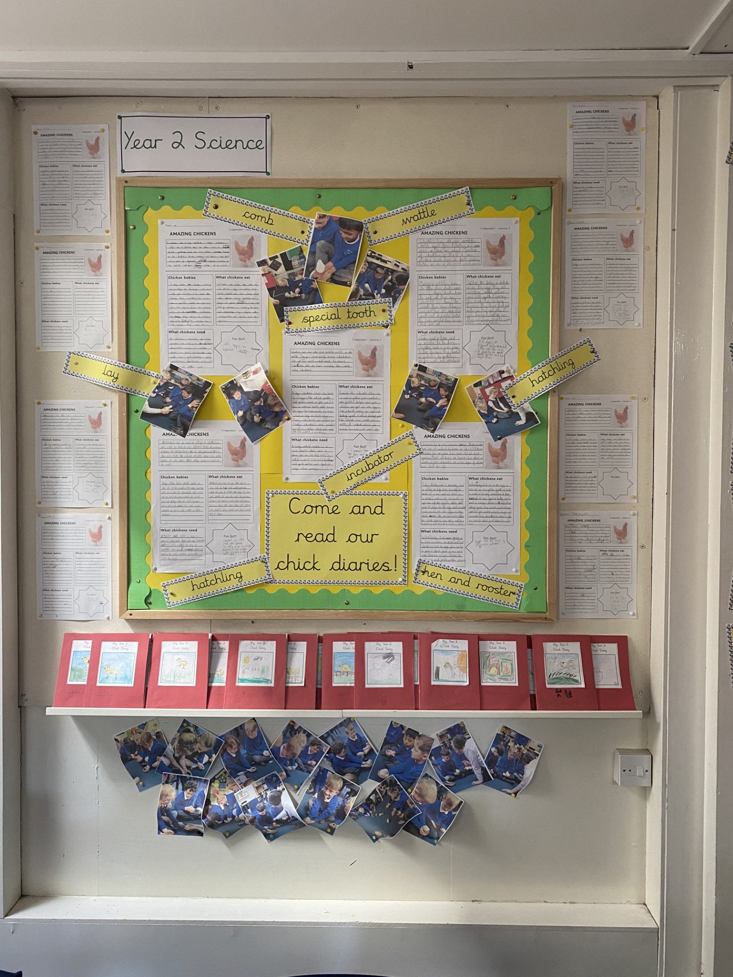 The children have all worked extremely hard all term and there is so much progress to celebrate. The little chicks have now gone home, but during their stay we used them as our inspiration for indpedendent writing. Below is a lovely image our chicken display. It has our factual writing and our chicken diaries - pop in and have a read!
