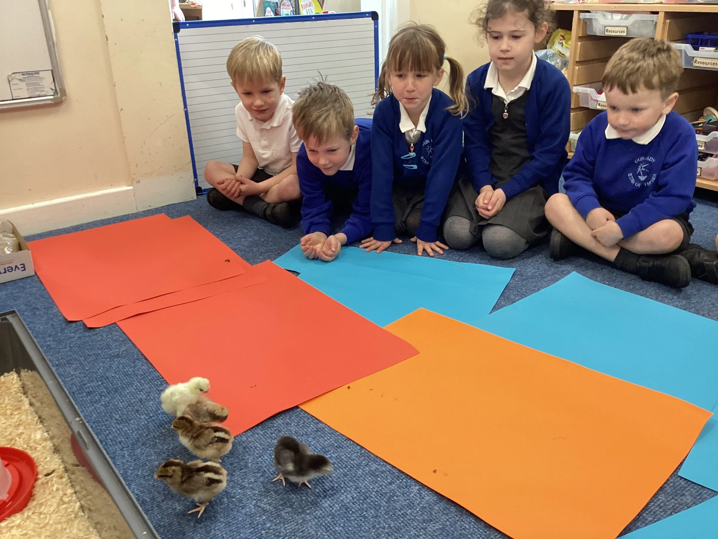 On Wednesday afternoon, I took the Year 1 and Reception children to look at the chicks from Year 2 we even got to stroke them! They were quite and calm so we didn’t scare the chicks, we loved getting to meet them with a favourite being Goldilocks.