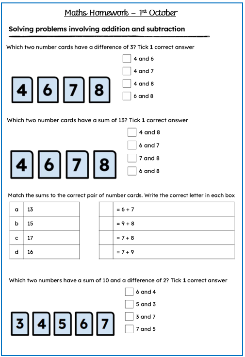 Maths - Please complete the questions in your homework book.