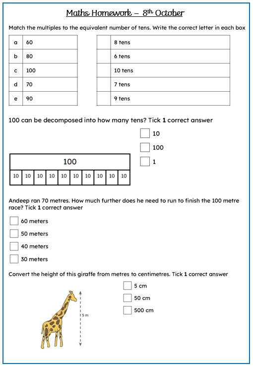 Maths - Please complete the questions in your homework book.