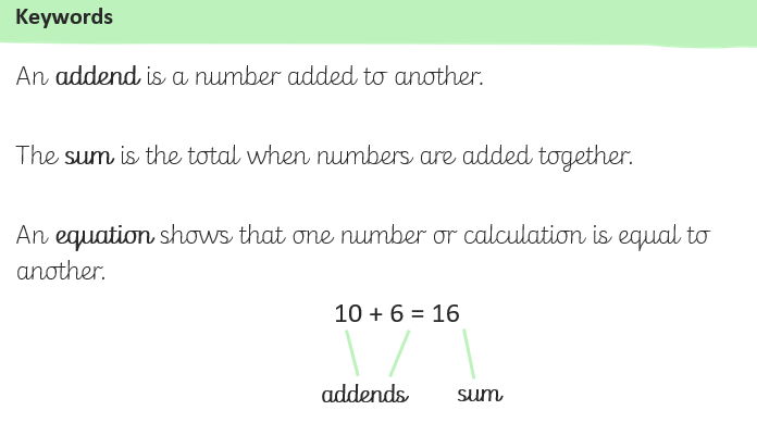 Key words in our maths lessons this week have been - sum, addend, equation, minuend, subtrahend and difference.