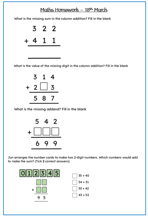 Maths - Please complete the questions in your homework book.