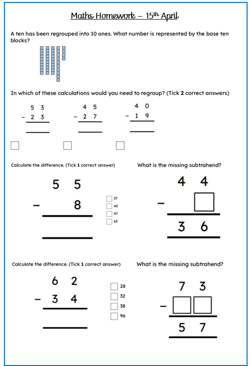 Maths - Please complete the questions in your homework book.